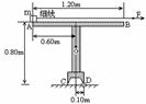 (33)(8分)质量m=2.0千克的小铁块静止于水平导轨AB的A端.导轨及支架ABCD形状及尺寸如上右图,它只能绕通过支架D点的垂直于纸面的水平轴转动,其重心在图中的O点,质量M=4.0千克.现用一细线沿导轨拉铁块,拉力F=12牛.铁块和导轨之间的摩擦系数μ=0.50.重力加速度g=10米/秒2.从铁块运动时起,导轨(及支架)能保持静止的最长时间是多少?