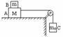 10.A、B、C三物块质量分别为M、m和m0,作如图所示的联结.绳子不可伸长,且绳子和滑轮的质量、滑轮的摩擦均可不计.若B随A一起沿水平桌面作匀速运动,则可以断定