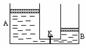 13.图中容器A、B各有一个可自由移动的轻活塞,活塞下面是水,上面是大气,大气压恒定.A、B的底部由带有阀门K的管道相连.整个装置与外界绝热.原先,A中水面比B中的高.打开阀门,使A中的水逐渐向B中流,最后达到平衡.在这个过程中,