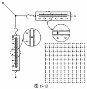 22.将橡皮筋的一端固定在A点,另一端拴上两根细绳,每根细绳分别连着一个量程为5牛、最小刻度为0.1牛的弹簧测力计.沿着两个不同的方向拉弹簧测力计.当橡皮筋的活动端拉到O点时,两根细绳相互垂直,如图19-12所示.这时弹簧测力计的读数可从图中读出.