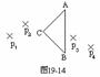 24.如图19-14所示,用三棱镜做测定玻璃折射率的实验.先在白纸上放好三棱镜,在棱镜的一侧插上两枚大头针P1和P2,然后在棱镜的另一侧观察,调整视线使P1的像被P2挡住.接着在眼睛所在的一侧插两枚大头针P3、P4,使P3挡住P1、P2的像.P4挡住P3和P1、P2的像,在纸上标出的大头针位置和三棱镜轮廓如图所示.