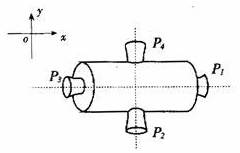 图为一空间探测器的示意图,P1、P2、P3、P4是四个喷气发动机,P1、P3的连线与空间一固定坐标系的x轴平行,P2、P4的连线与y轴平行。每台发动机开动时,都能向探测器提供推力,但不会使探测器转动,开始时,探测器以恒定的速率v0向正x方向平动。要使探测器改为向正x偏负y60°的方向以原来的速率v0平动,则可