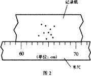 (6分)某同学用图1所示装置通过半径相同的A、B两球的碰撞来验证动量守恒定律。图中PQ是斜槽,以为水平槽,实验时先使A球从斜槽上某一固定位置G由静止开始滚下,落到位于水平地面的记录纸上,留下痕迹。重复上述操作10次,得到10个落点痕迹。再把B 球放在水平槽上靠近槽末端的地方,让A球仍从位置G由静止开始滚下,和下球碰撞后,A、B球分别在记录纸上留下各自的落点痕迹,重复这种操作10次。图:中0点是水平槽未 端R在记录纸上的垂直投影点,B球落点痕迹如图2所示,其中米尺水平放置,且平行于 G、R、O所在的平面,米尺的零点与O点对齐。