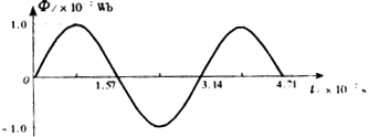100.穿过每匝线圈的磁通φ随时间按正弦规律变化,如图所示,发电机内阻r=5.0Ω,外电路电阻R=95Ω。已知感应电动势的最大值Em=nωφm,其中φm为穿过每匝线圈磁通量的最大值。求串联在外电路中的交流电流表(内阻不计)的读数。