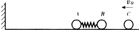 22.(14分)在原子核物理中,研究核子与核子关联的最有效途径是“双电荷交换反应”,这类反应的前半部分过程和下述力学模型类似。两个小球A和B用轻质弹簧相连,在光滑的水平直轨道上处于静止状态。在它们左边有一垂直于轨道的固定挡板P,右边有一小球C沿轨道以速度v0射向B球,如图所示。C与B发生碰撞并立即结成一个整体D。在它们继续向左运动的过程中,当弹簧长度变到最短时,长度突然被锁定,不再改变。然后,A球与挡板P发生碰撞,碰后A、D都静止不动,A与P接触而不粘连,过一段时间,突然解锁定(锁定及解除锁定均无机械能损失)。已知A、B、C三球的质量均为m。