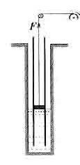 22.(13分)一个圆柱形的竖直的井里存有一定量的水,井的侧面和底部是密闭的,在井中固定地插着一根两端开口的薄壁圆管,管和井共轴,管下端未触及井底,在圆管内有一不漏气的活塞,它可沿圆管上下滑动,开始时,管内外水面相齐,且活塞恰好触及水面,如图所示,现用卷扬机通过绳子对活塞施加一个向上的力F,使活塞缓慢向上移动,已知管筒半径r=0.100m,井的半径R=2r,水的密度ρ=1.00×103Kg/m3,大气压强为P0=1.00×103Pa,求活塞上升H=9.00m的过程中拉力F所做的功。(井和管在水面以上及水面以下的部分足够长,不计活塞质量,不计摩擦,重力加速度g=10m/s2)。