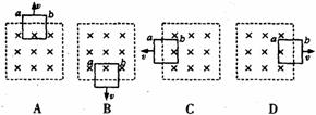 6.粗细均习的电阻丝围成的正方形线框置于有界匀强磁场中,磁场方向垂直于线框平面,其边界与正方形线框的边平行。现使线框以同样大小的速度沿四个不同方向平移出磁场,如图所示,则在移出过程中线框的一边a、b两点间电势差绝对值最大的是