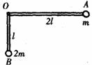 一质量不计的直角形支架两端分别连接质量为m和2m的小球A和B。支架的两直角边长度分别为2l和l,支架可绕固定轴O在竖直平面内无摩擦转动,如图所示。开始时OA边处于水平位置,由静止释放,则
