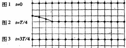 10.细绳的一端在外力作用下从t=0时刻开始做简谐振动,激发出一列简谐横波。在细绳上选取15个点,图1为t=0时刻各点所处的位置,图2为t=T/4时刻的波形图(T为波的周期)。在图3中画出t=3T/4时刻的波形图。