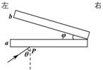 10.如图,a和b都是厚度均匀的平玻璃板,它们之间的夹角为j,一细光束以入射角q从P点射入,q>j .已知此光束由红光和蓝光组成,则当光束透过b板后,