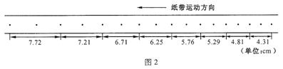 (7分)实验装置如图1所示;一木块放在水平长木板上,左侧拴有一细软线,跨过固定在木板边缘的滑轮与一重物相连,木块右侧与打点计时器的纸带相连,在重物牵引下,木块在木板上向左运动,重物落地后,木块继续向左做匀减速运动,图2给出了重物落地后,打点计时器在纸带上打出的一些点,试根据给出的数据,求木块与木板间的摩擦因数m。要求写出主要的运算过程,结果保留2位有效数字。(打点计时器所用交流电频率为50Hz,不计纸带与木块间的拉力。取重力加速度g=10m/s2)