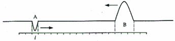 13.A、B两波相向而行,在某时刻的波形与位置如图所示.已知波的传播速度为v,图中标尺每格长度为l,在图中画出又经过t=7l/v时的波形.