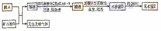 已知B是石灰石,D盐含有约49%的结晶水,无水盐E可用作干燥剂。取少量E溶于水,向其中滴加硝酸后,再滴加硝酸银溶液,有白色沉淀F生成。