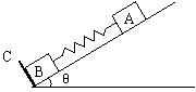 ( 19分)如图所示,在倾角为θ的光滑斜面上有两个用轻质弹簧相连接的物块A 、B .它们的质量分别为mA、mB,弹簧的劲度系数为k , C为一固定挡板。系统处于静止状态。现开始用一恒力F沿斜面方向拉物块A 使之向上运动,求物块B 刚要离开C时物块A 的加速度a 和从开始到此时物块A 的位移d。重力加速度为g。