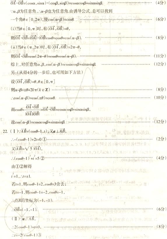 试用向量的有关知识推导两角差的余弦公式,即对任:意角
