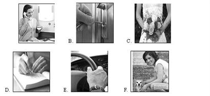 I. 听句子选择图片:你将听到五个句子。请你根据听到的内容,选出五幅相应的图片。每个句子后你有5秒钟的答题时间。听一遍。共5小题,计5分。