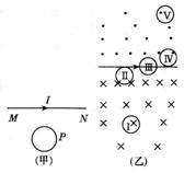 解析:根据直流电流磁场特点,靠近导线处磁场强,远离导线处磁场弱。把线圈P从MN下方运动到上方过程中的几个特殊位置如图(乙)所示,可知Ⅰ→Ⅱ磁通量增加,Ⅱ→Ⅲ磁通量减小,Ⅲ→Ⅳ磁通量增加,Ⅳ→Ⅴ磁通量减小,所以整个过程磁通量变化经历了增加→减小→增加→减小,所以在整个过程中P中都会有感应电流产生。