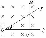 [例1]如图所示,有一弯成θ角的光滑金属导轨POQ,水平放置在磁感应强度为B的匀强磁场中,磁场方向与导轨平面垂直,有一金属棒MN与导轨的OQ边垂直放置,当金属棒从O点开始以加速度a向右匀加速运动t秒时,棒与导轨所构成的回路中的感应电动势是多少?