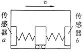 [例1]用如图所示的装置可以测量汽车在水平路面上做匀加速直线运动的加速度.该装置是在矩形箱子的前、后壁上各安装一个由力敏电阻组成的压力传感器.用两根相同的轻弹簧夹着一个质量为2.0 kg的滑块可无摩擦滑动,两弹簧的另一端分别压在传感器a、b上,其压力大小可直接从传感器的液晶显示屏上读出.现将装置沿运动方向固定在汽车上,传感器b在前,传感器a在后.汽车静止时,传感器a、b在的示数均为 10 N(取g=10 m/s2).