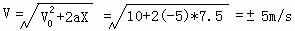 刹车经7.5米时的速度为5m/s,与初速度方向相同。
