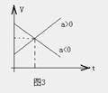 所对应的是一条直线,如图3所示。由图可求出任意时刻的速度,或根据速度求出时间,还可以求出任意时间所通过的位移,还可以求出匀变速直线运动的加速度a=△υ/△t=直线的斜率K,直线的斜率越大,