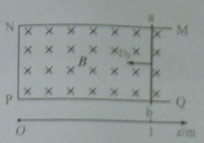 (2010年高考上海卷第32题)(14分)如图,宽度L=0.5m的光滑金属框架MNPQ固定板个与水平面内,并处在磁感应强度大小B=0.4T,方向竖直向下的匀强磁场中,框架的电阻非均匀分布,将质量m=0.1kg,电阻可忽略的金属棒ab放置在框架上,并且框架接触良好,以P为坐标原点,PQ方向为x轴正方向建立坐标,金属棒从