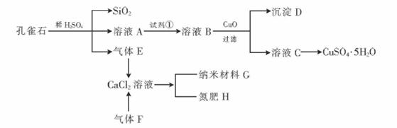 18.(12分)孔雀石主要含Cu2(OH)2CO3,还含少量Fe、Si的化合物。以孔雀石为原料可制备CuSO4·5H2O及纳米材料G,步骤如下: