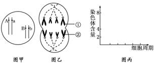解析:(1)图乙表示染色体着丝点已分裂,形成的两条子染色体在纺锤丝牵引下向两极移动,移向每一极的染色体中有同源染色体,所以图乙是有丝分裂后期。