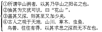 ①句,“其”作“乃华山之阳”的主语,相当于“它”,代指“华山洞”。②句,“其”与“为文”构成主谓短句,相当于“它”,代指“仆碑”。③句,两个“其”分别作分句主语,前一个相当于“它”,代指上文的“山洞”;第二个“其”相当于“他们”,代指上文的“游人”。④句,“其”与“求思”构成主谓词组,相当于“他们”,代指“古人”。