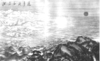 B.画面上旭日东升,江山壮丽,表现出新中国的勃勃生机。