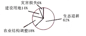 59.(2分)目前我国人均耕地仅有1.43亩,不到世界人均水平的40%。近7年来,全国耕地减少了1亿亩。其中1300多万亩是有灌溉设施的优良田。下图为近年来耕地减少的因素构成图。读图完成(1)-(2)题。