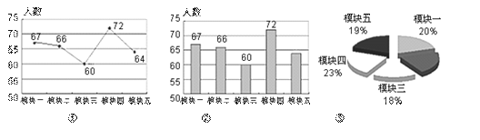 (3)(2分)表格数据的图形化表达类型有柱形图、饼图、折线图等,下图中能清楚地表示各个选修模块选修人数差别的的图形的序号是 ,其图形化表达类型为 。
