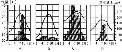 2008年1月我国南方地区部分省份受到雪灾的影响,下列四幅图中,反映南方地区气候特征的是![]()