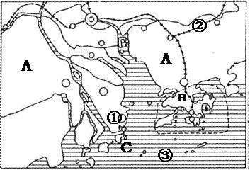 3、读“我国南部沿海部分区域图”,回答问题(8分):