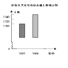 30..(2008年杭州市)小张根据某媒体上报道的一张条形统计图(如右),在随笔中写道:“……今年在我市的中学生艺术节上,参加合唱比赛的人数比去年激增……“,小张说的对不对?为什么?(请你用一句话对小张的说法作一个评价); .