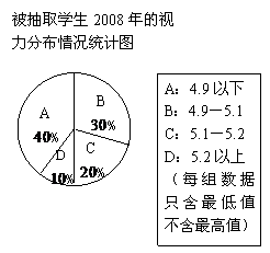 (2)若该市共有8万名九年级学生,请你估计该市九年级视力不良(4.9以下)的学生大约有多少人?