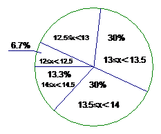 26.(2008 湖北 十堰)在同一条件下,对同一型号的汽车进行耗油1升所行驶路程的实验,将收集到的数据作为一个样本进行分析,绘制出部分频数分布直方图和部分扇形统计图.如下图所示(路程单位:km)