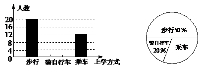 28.(2008 四川 泸州)学习了统计知识后,小明的数学老师要求每个学生就本班同学的上学方式进行一次调查统计,如图是小明通过收集数据后绘制的两幅不完整的统计图.