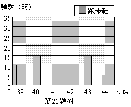 55. (2008 山东 聊城)某百货商场经理对新进某一品牌几种号码的男式跑步鞋的销售情况进行了一周的统计,得到一组数据后,绘制了频数(双)频率统计表与频数分布直方图如下: