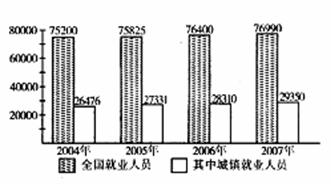 (1)2007年比2004年全国就业人员增加了多少万人?