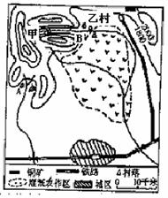 下图是“我国西南某城市附近图”因为城市附近发现了大型某铜矿,计划建一铜冶炼厂及水电站,回答:(6分)
