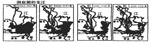 (2)1950-1958年期间,洞庭湖面积迅速缩小