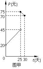 (1)根据提供的图像(图甲),写出该商品每件的销售价格P与时间t的函数关系式;