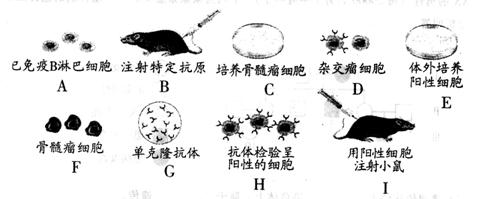 ②图B注射的特定抗原是指 抗原,图H中进行克隆化培养和抗体检测呈阳性的细胞是 细胞。