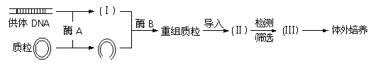 形成重组质粒过程中,对核苷酸序列有严格要求的工具酶是 。受体细胞是 ,对导入重组质粒的II进行“检测”的目的是 。