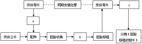 (3)为了提高胚胎的利用率,通常在早期胚胎发育的 阶段,采用 技术,培育得到多头相同的转基因牛犊。