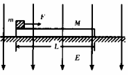 26.(21分)质量为m=1.0kg、带电量q=+2.5×10-4C的小滑块(可视为质点)放在质量为M=2.0kg的绝缘长木板的左端,木板放在光滑水平面上,滑块与木板之间的动摩擦因数为μ=0.2,木板长L=1.5m,开始时两者都处于静止状态,所在空间加有一个方向竖直向下强度为E= 4.0×104N/C的匀强电场,如图所示.取g=10m/s2,试求: