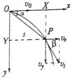 平抛运动可分解为水平方向的匀速直线运动和竖直方向的自由落体运动,以物体的出发点为原点,沿水平和竖直方向建立xOy坐标,如图所示: