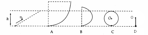例1如图所示,小球以初速度为v0从光滑斜面底部向上滑,恰能到达最大高度为h的斜面顶部。右图中A是内轨半径大于h的光滑轨道、B是内轨半径小于h的光滑轨道、C是内轨半径等于h光滑轨道、D是长为