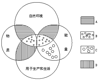 (2)A表示人类的生存和发展需要从环境中获取---------- 和---------- ;B表示人类新陈代谢和消费活动产生的------------------ 又要排放到环境中去。